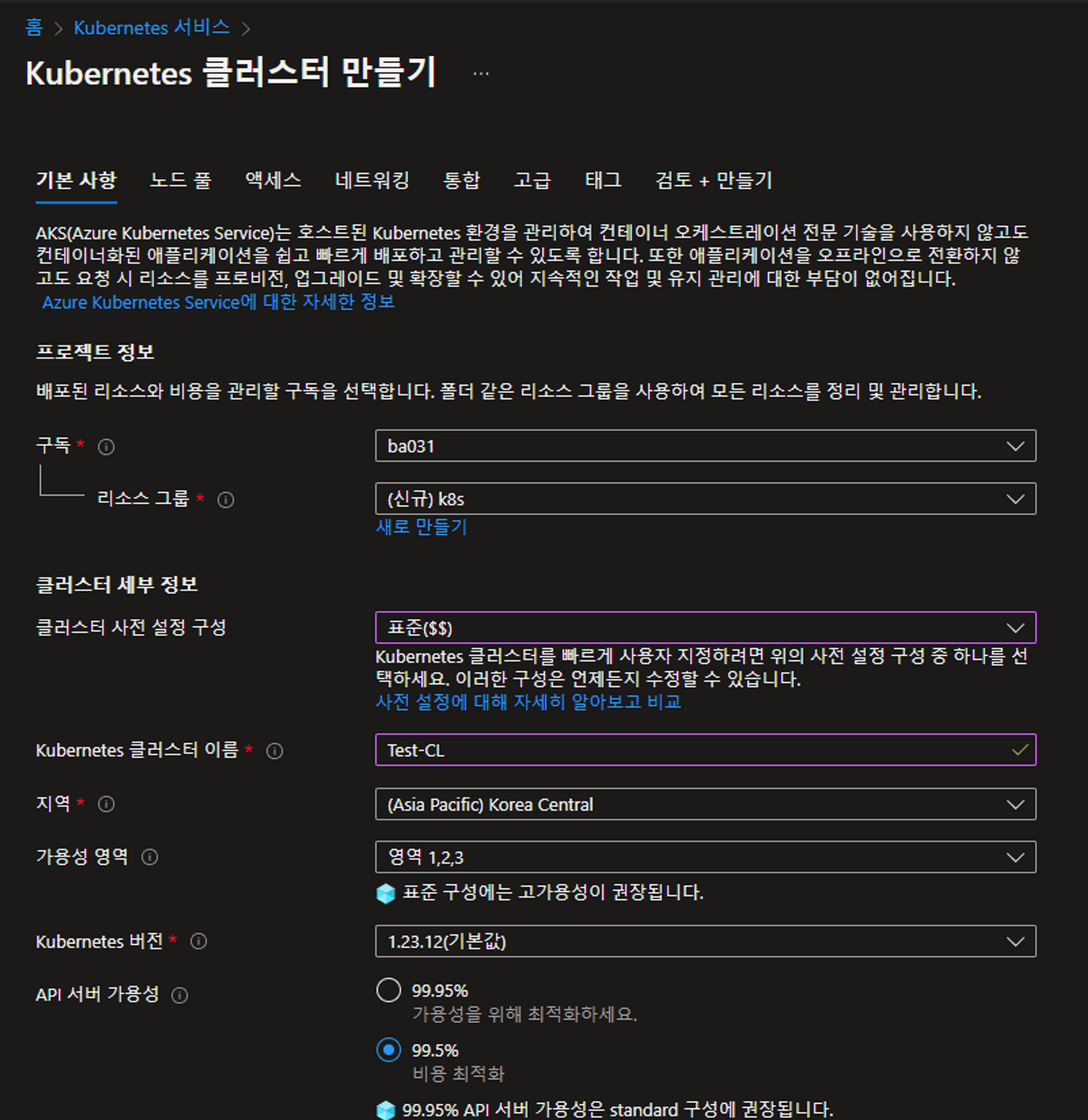 | 개발/테스트 | AKS를 실험하거나 테스트 애플리케이션을 배포하는 데 가장 적합합니다. |