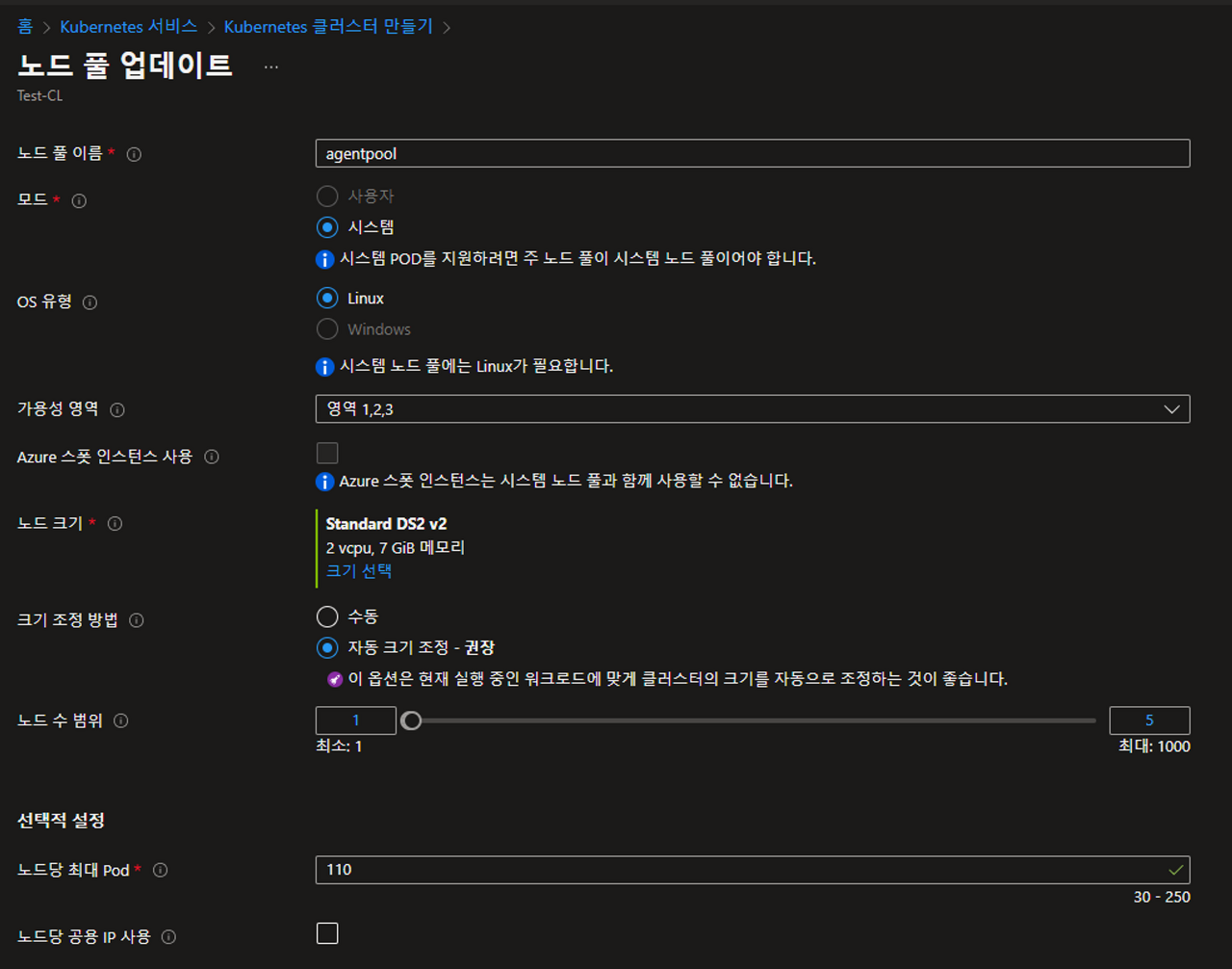 AKS(Azure Kubernetes Service)에서 노드 풀 만들기 - Azure Kubernetes Service