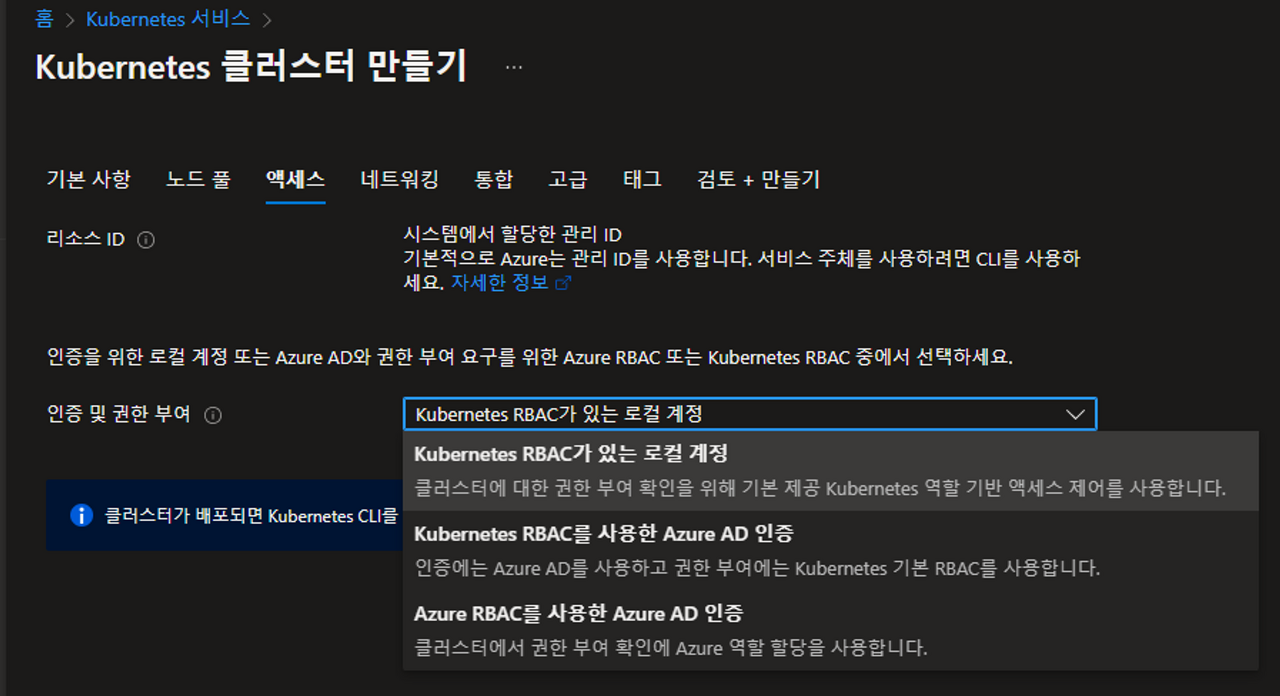 Azure Portal에서 클러스터를 만들거나 Azure CLI를 사용할 수 있습니다.