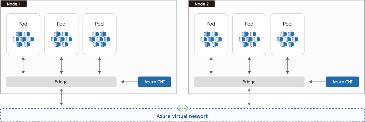 Azure CNI는 컨테이너를 Azure Virtual Network와 함께 사용할 수 있도록 하는 플러그인 입니다.