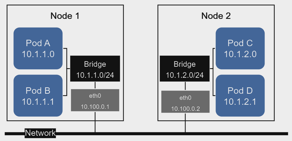 각 Pod 들은 Kubernetes Cluster 내에서만 유효한 가상의 IP를 부여받고 같은 Cluster 내 Pod들 끼리 통신이 가능하다.